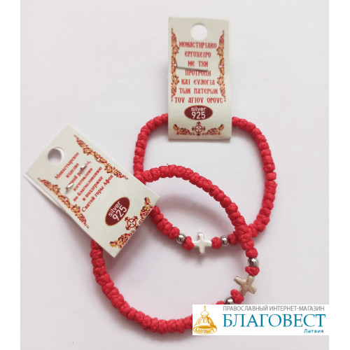 Браслет вязаный / комбоскини, с крестиком - серебро 925,