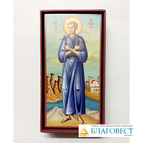 Икона святого праведн. Иоанна Русского, освященная на мощах святого, 6.5 х 13 см, Греция
