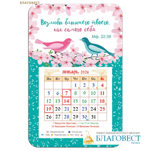 Православный календарь-магнит с отрывным блоком Возлюби ближнего твоего, как самого себя... на 2026 год