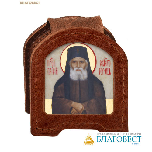 Икона дорожная раскладная Преподобный Паисий Святогорец (натуральная кожа). Цвет коньяк