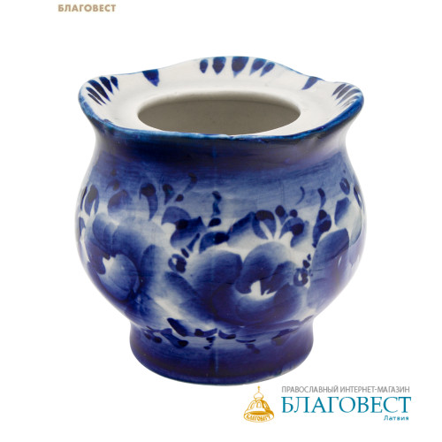 Лампада керамическая «Гжель»Настольная лампада для домашней молитвы, выполненная в стиле традиционной гжели. Белая керамика с синей ручной росписью. Устойчивое основание. Прекрасный подарок для православных христиан.