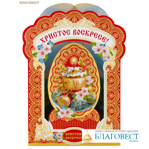 Открытка панорамная «Христос Воскресе!»Объёмная панорамная открытка с главным пасхальным приветствием. При раскрытии создаётся многослойная композиция, посвящённая светлому празднику Пасхи.Такую открытку приятно рассматривать — она станет самостоятельным украшением праздничной корзины или дополнением к подарку.