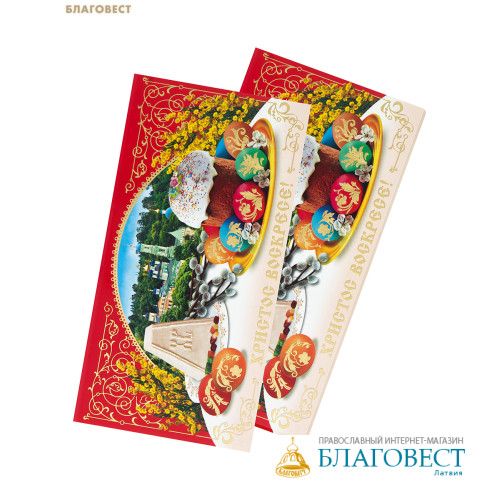 Открытка пасхальная двухстворчатая горизонтальная (упаковка 5 шт.)Праздничная открытка к Пасхе в классическом двухстворчатом формате. Внутри достаточно места для вашего поздравления. Открытка подойдёт для вручения родным, друзьям, коллегам или прихожанам.Продаётся упаковкой по 5 штук — удобно, если нужно поздравить несколько человек. Мини-опт по привлекательной цене: выгоднее, чем покупать по одной.