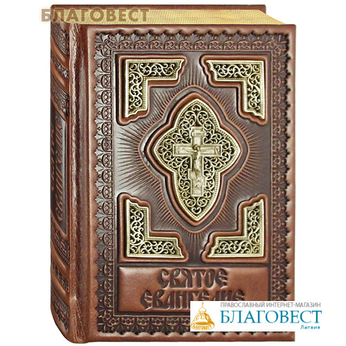 Святое Евангелие. Кожаный переплет. Золотой обрез. Латунные вставки. Церковно-славянский шрифт